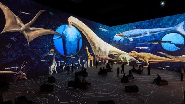 The dinosaurs roam across all four sides of the room, and the summer holiday crowd will doubtless squeal at some of the ‘he’s behind you’ realisations that always make a visit to this immersive space a physical experience.